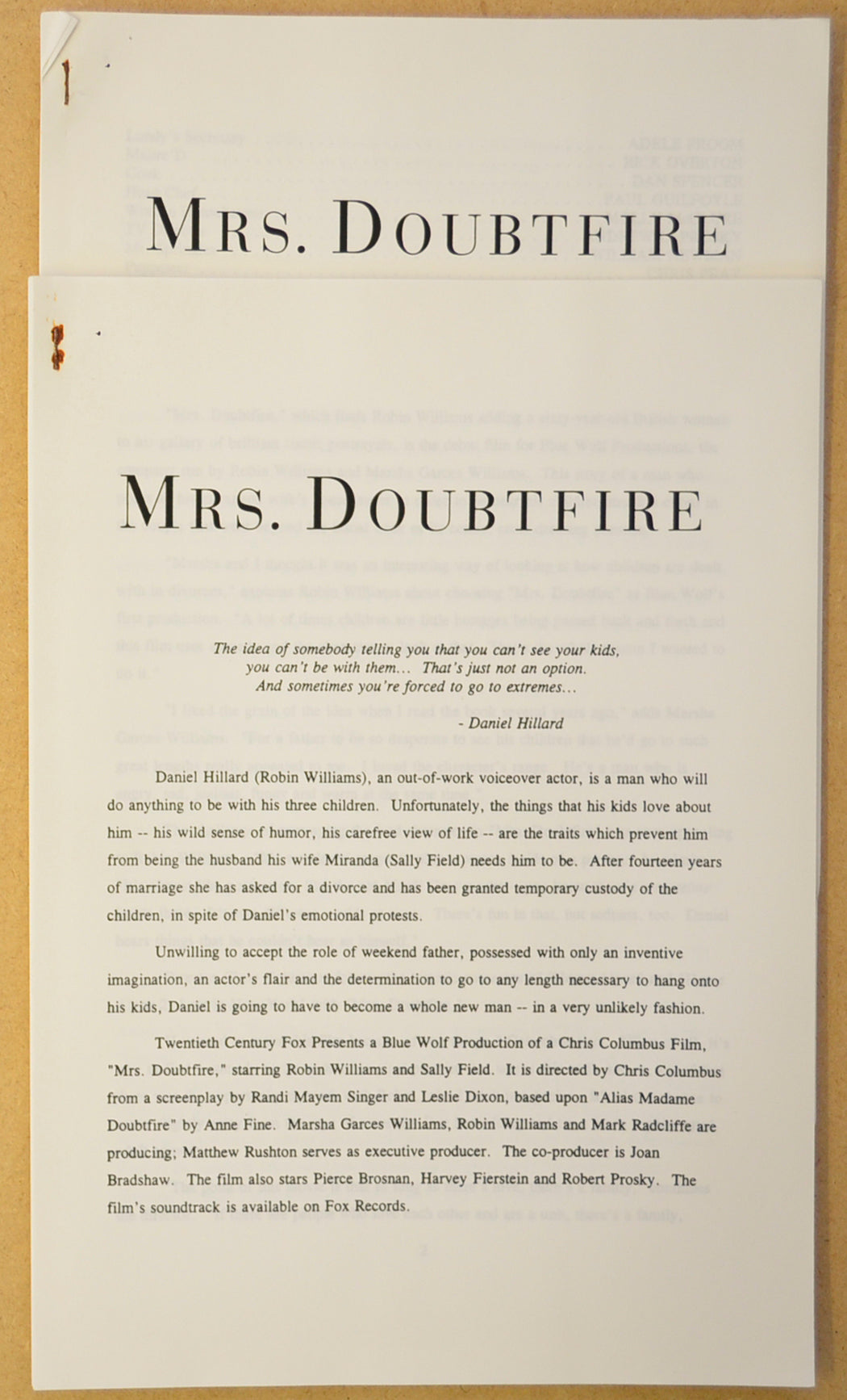“Mrs Doubtfire” Original Cinema Exhibitors Press Kit