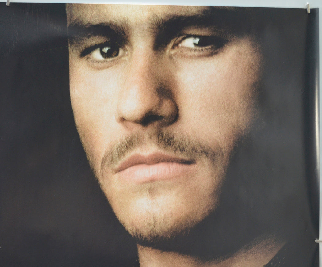 23 cm band of tiny fine brownish print error lines near the bottom left (going through the YOU text at the bottom), some additional tiny fine brownish print error lines near the bottom edge, a couple of tiny white surface creases just left of the title and another near the bottom left corner, very mild creasing near the top of the left edge, 6 cm diagonal crease just above the ORLANDO BLOOM credit, 12 x 10 cm patch of fine brownish print error lines near the top center (just left of Ledgers eyebrow), otherwise very good.