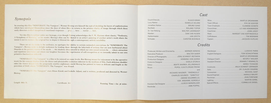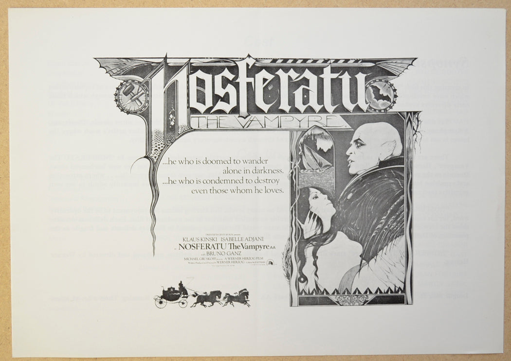 “Nosferatu The Vampyre” Original Cinema Exhibitors Synopsis / Credits Booklet (UK)