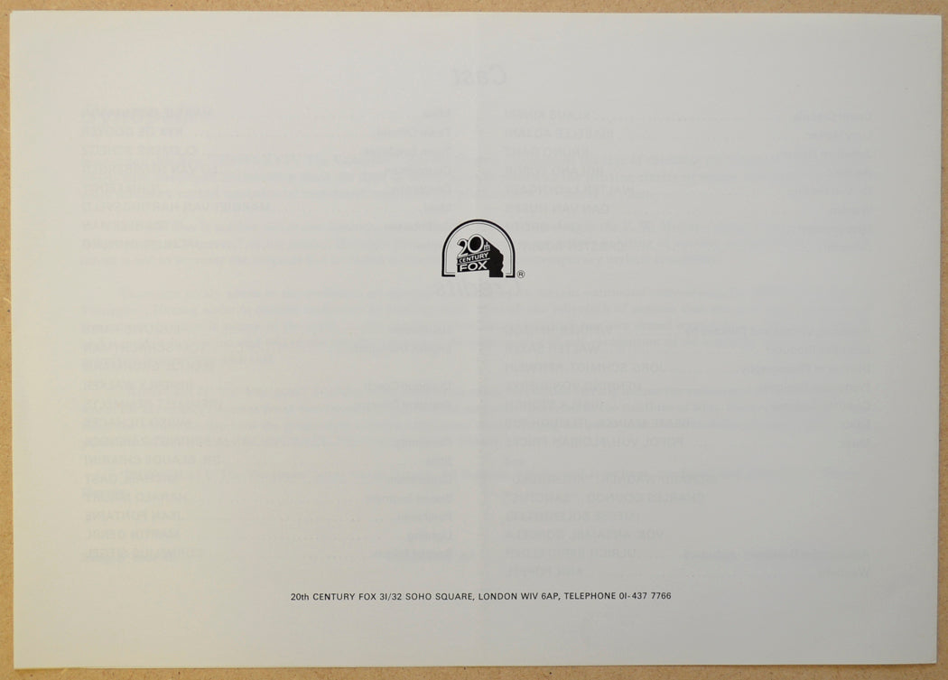 Original Cinema Exhibitors Synopsis / Credits Booklet (UK)