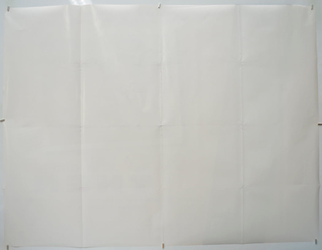 Very mild fold wear (white stress marks on the some of the fold lines and a little creasing around some of the intersections) note there are three vertical and one horizontal folds, 8 cm horizontal crease from near the bottom of the left edge inwards, tiny tear on the left edge, tiny black print error spot in the cream background to the right of the center photo in the filmstrip on the left, otherwise very good.