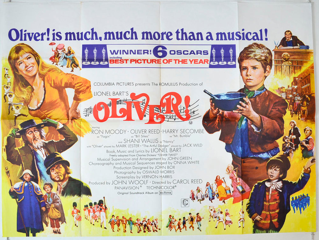 Ron Moody, Oliver Reed, Harry Secombe, Shani Wallis, Mark Lester, Jack Wild, Hugh Griffith, Joseph O'Conor, Peggy Mount, Leonard Rossiter, Hylda Baker, Kenneth Cranham, Megs Jenkins