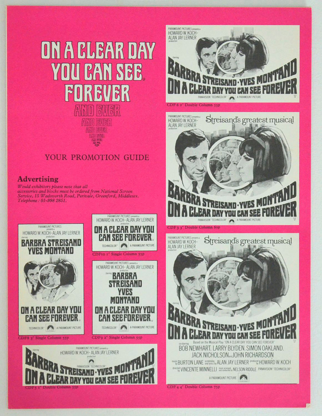 “On A Clear Day You Can See Forever” Original 3 Sheet Cinema Exhibitors Campaign Promotion Guide + Folder + Poster