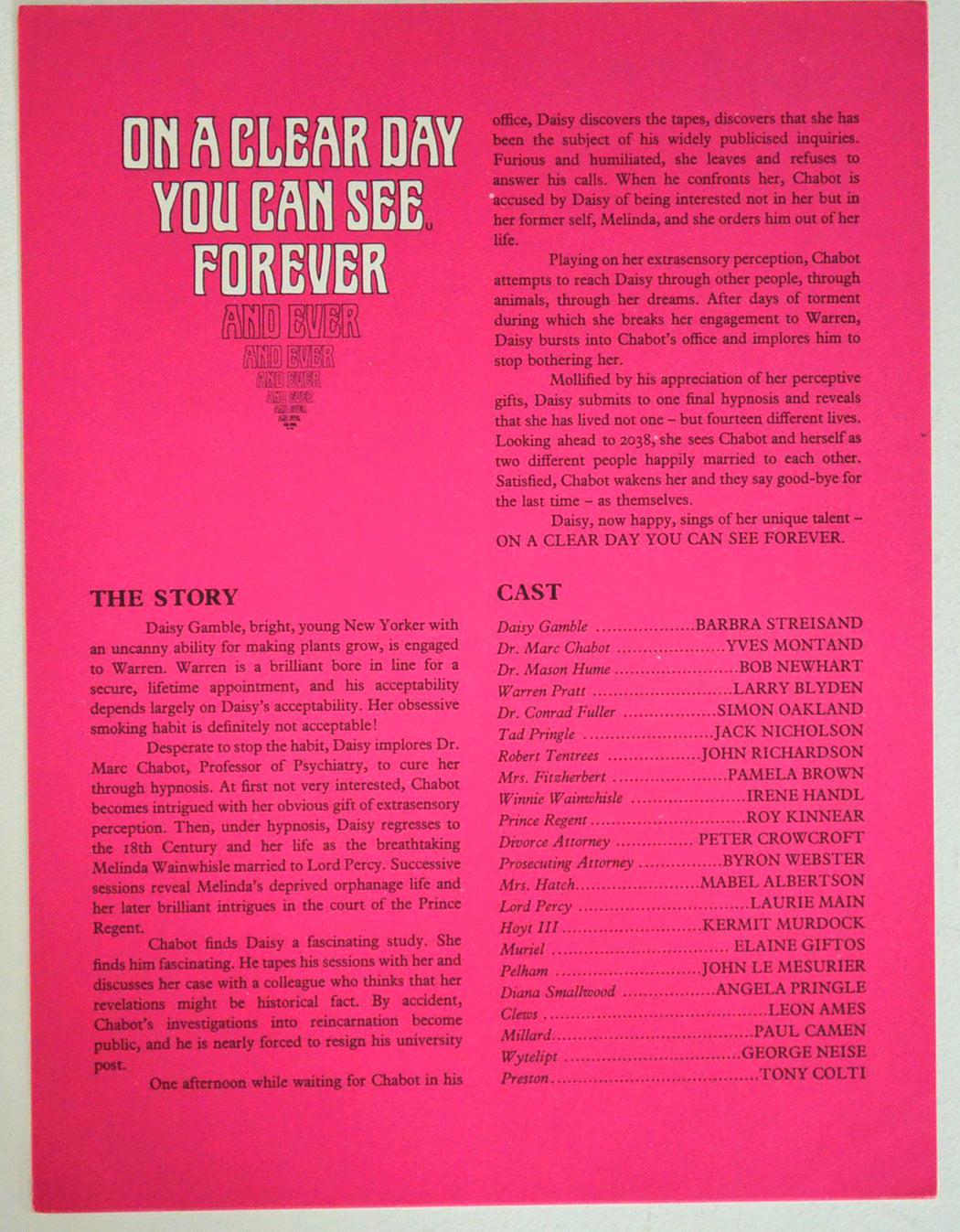 Barbra Streisand, Yves Montand, Bob Newhart, Jack Nicholson, Larry Blyden, Simon Oakland