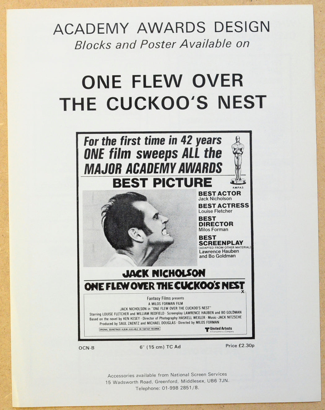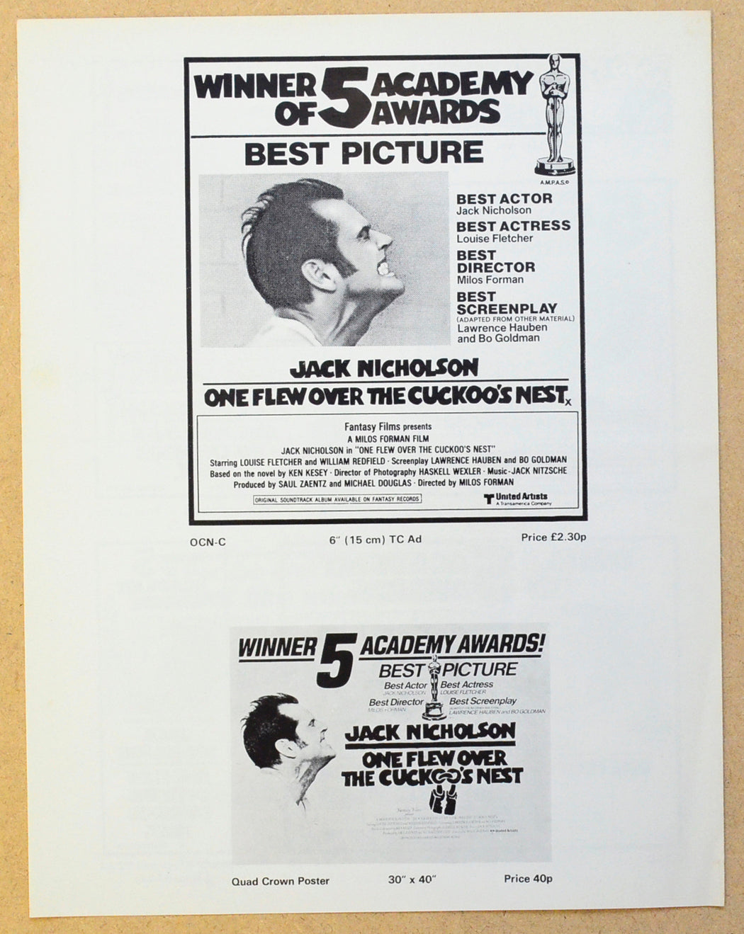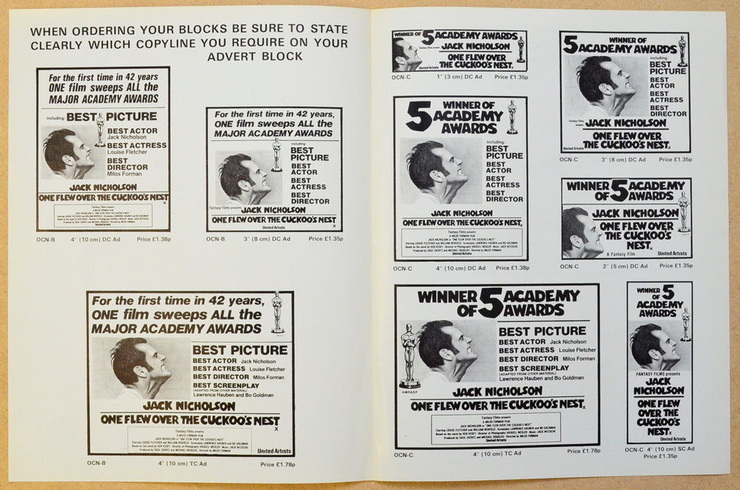 “One Flew Over The Cuckoo’s Nest” Original 4 Page Cinema Exhibitors Campaign Press Book (UK)