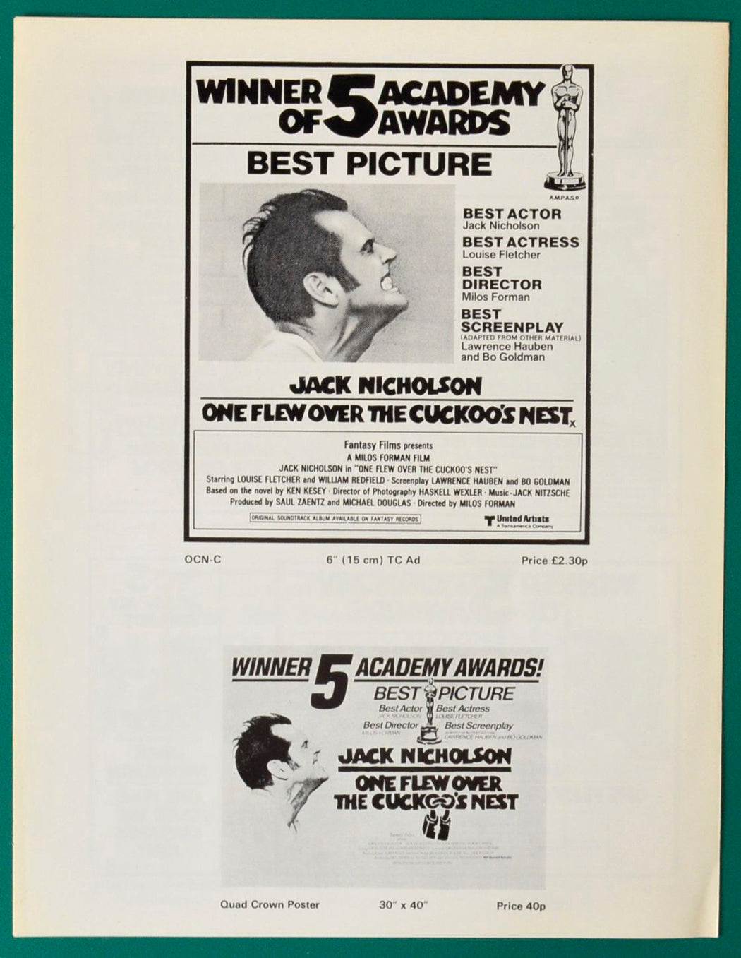 “One Flew Over The Cuckoos Nest” Original 4 Page Cinema Exhibitors Campaign Press Book