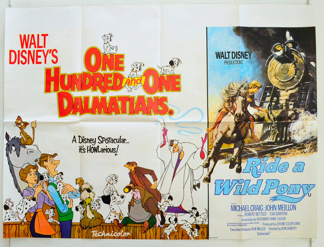 “One Hundred And One Dalmatians / Ride A Wild Pony” (Double Bill) Original British Quad Poster - Film Poster - Movie Poster