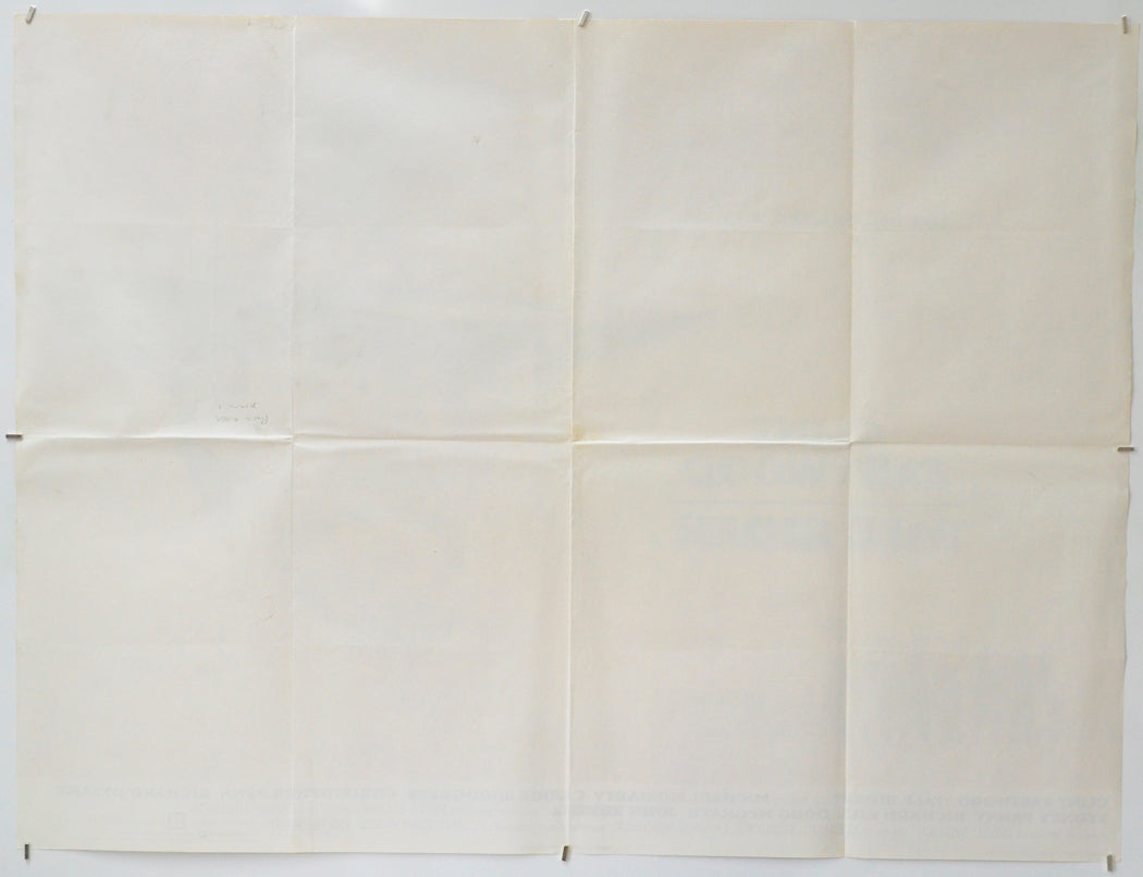1 cm tear along with two smaller tears on the top edge, light 3 cm diagonal crease across the top right corner, light 10 cm diagonal crease across the bottom right corner, tiny crease across the tip of the bottom left corner, very light vertical crease line from top to bottom just left of the center vertical fold line (has a little surrounding light surface creasing in places), extremely mild fold wear (light stress marks on some the fold lines and creasing around some of the intersections) note there are three horizontal and three vertical folds, a few tiny light specks of damp (foxing) on the back of the center vertical fold line (only noticeable on the front if the poster is held up to the light / backlit), otherwise excellent!Double Sided :