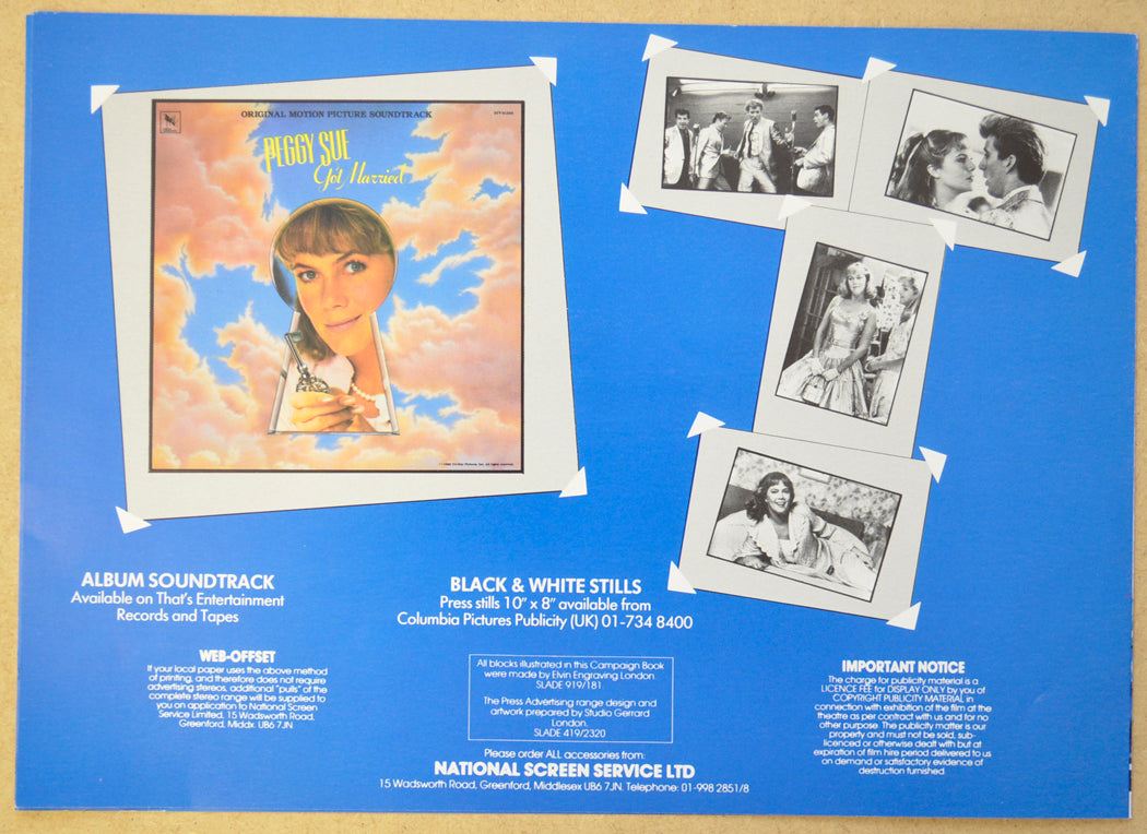 “Peggy Sue Got Married” Original 4 Page Cinema Exhibitors Campaign Press Book (UK)