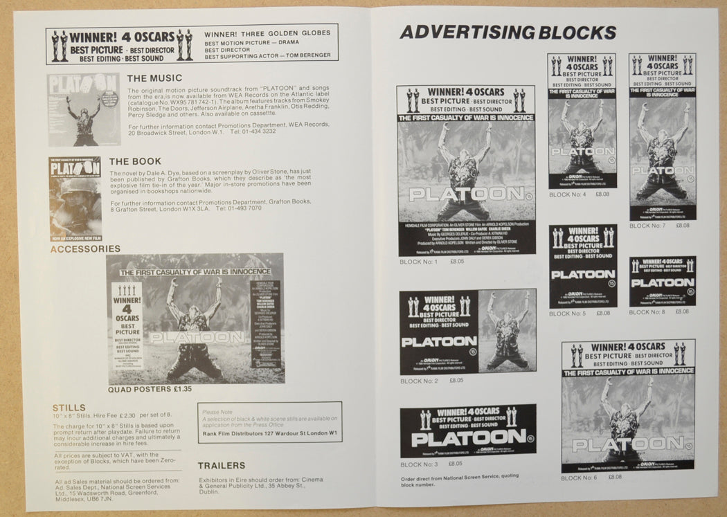 “Platoon” Original 4 Page Cinema Exhibitors Campaign Press Book (UK)