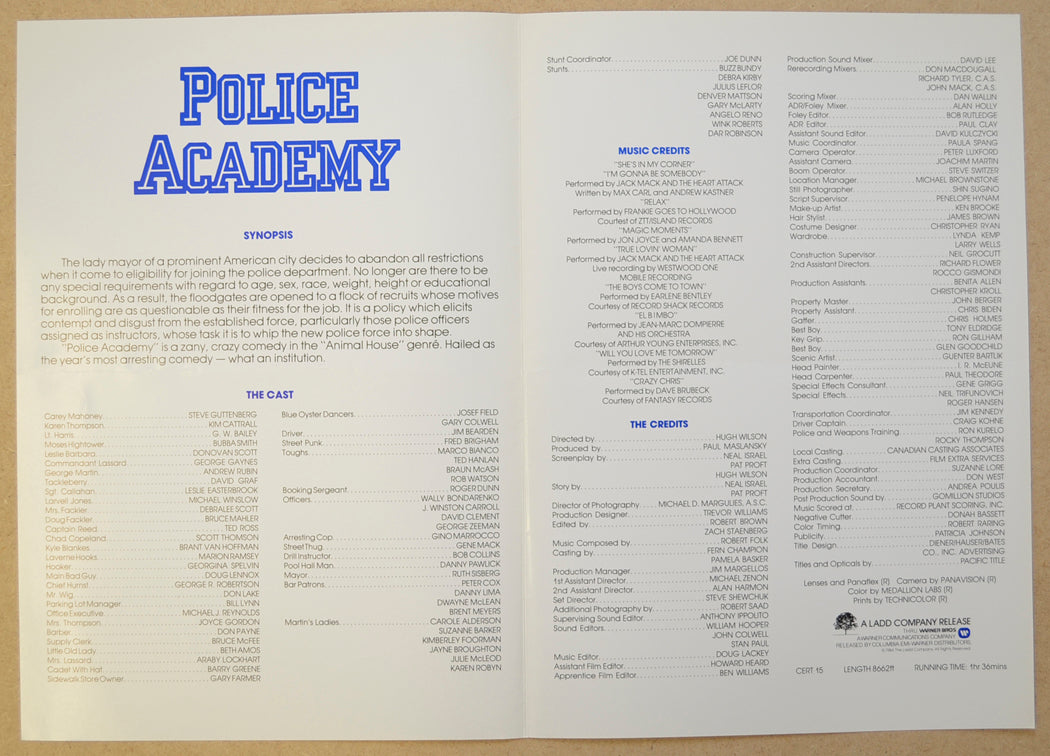 “Police Academy” Original Cinema Exhibitors Synopsis / Credits Booklet (UK)