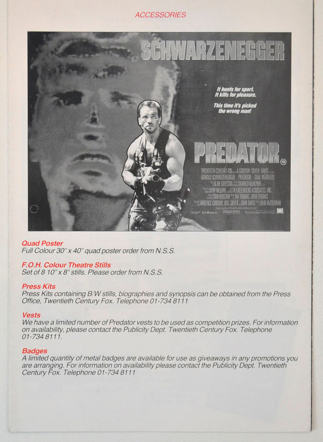 “Predator” Original 6 Page Cinema Exhibitors Campaign Press Book