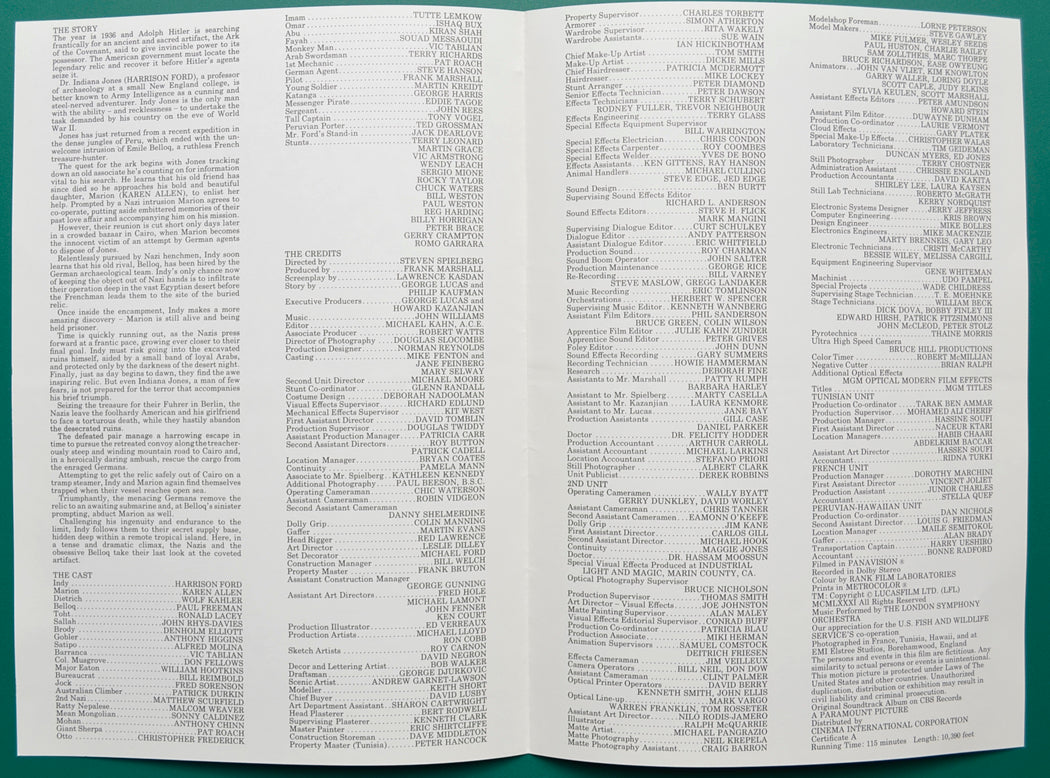 “Raiders Of The Lost Ark” Original 4 Page Cinema Exhibitors Synopsis / Credits Booklet