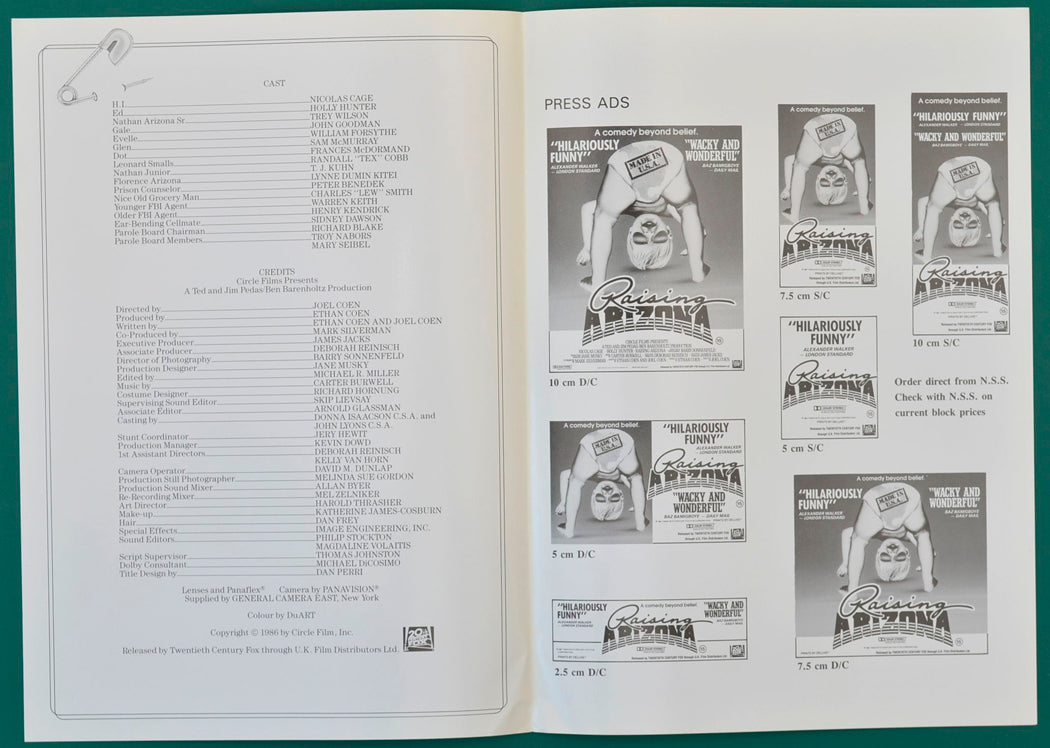 “Raising Arizona” Original Cinema Exhibitors Campaign Press Book in Folder