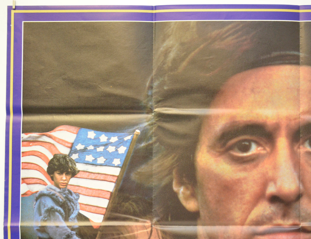 Extremely tiny tear and extremely mild edge wear on the left edge, pinhole near both top corners, tiny white print error ring near the top of the right vertical fold line, light creasing around a couple of the fold intersections (note there are three horizontal and three vertical folds as issued), faint surface crease within Pacino’s headband, title written on the back in Biro (only noticeable on the front if the poster is held up to the light / backlit), otherwise excellent.