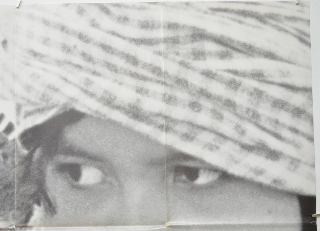 1 cm tear at the top of the right vertical fold line, small tear on the right edge, three tiny tears and extremely mild creasing on the left edge, very light edge wear at the center of both side edges, very mild fold wear including a small tear at the left and center fold intersections, a little yellowish print from the title has transferred onto and around the right fold intersection, the title has been written on the back in black pen and there are a few tiny Brown spots of damp on the back of the left vertical fold line (only noticeable on the front if the poster is held up to the light / backlit), otherwise very good.