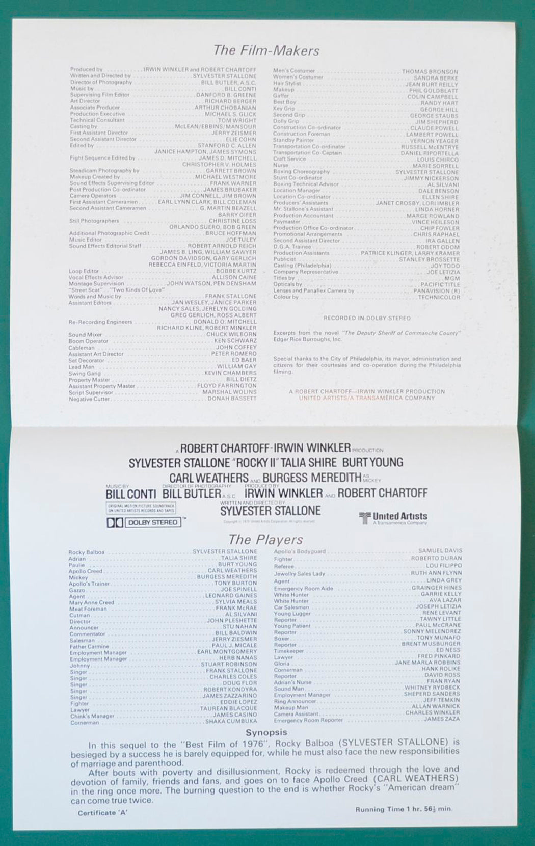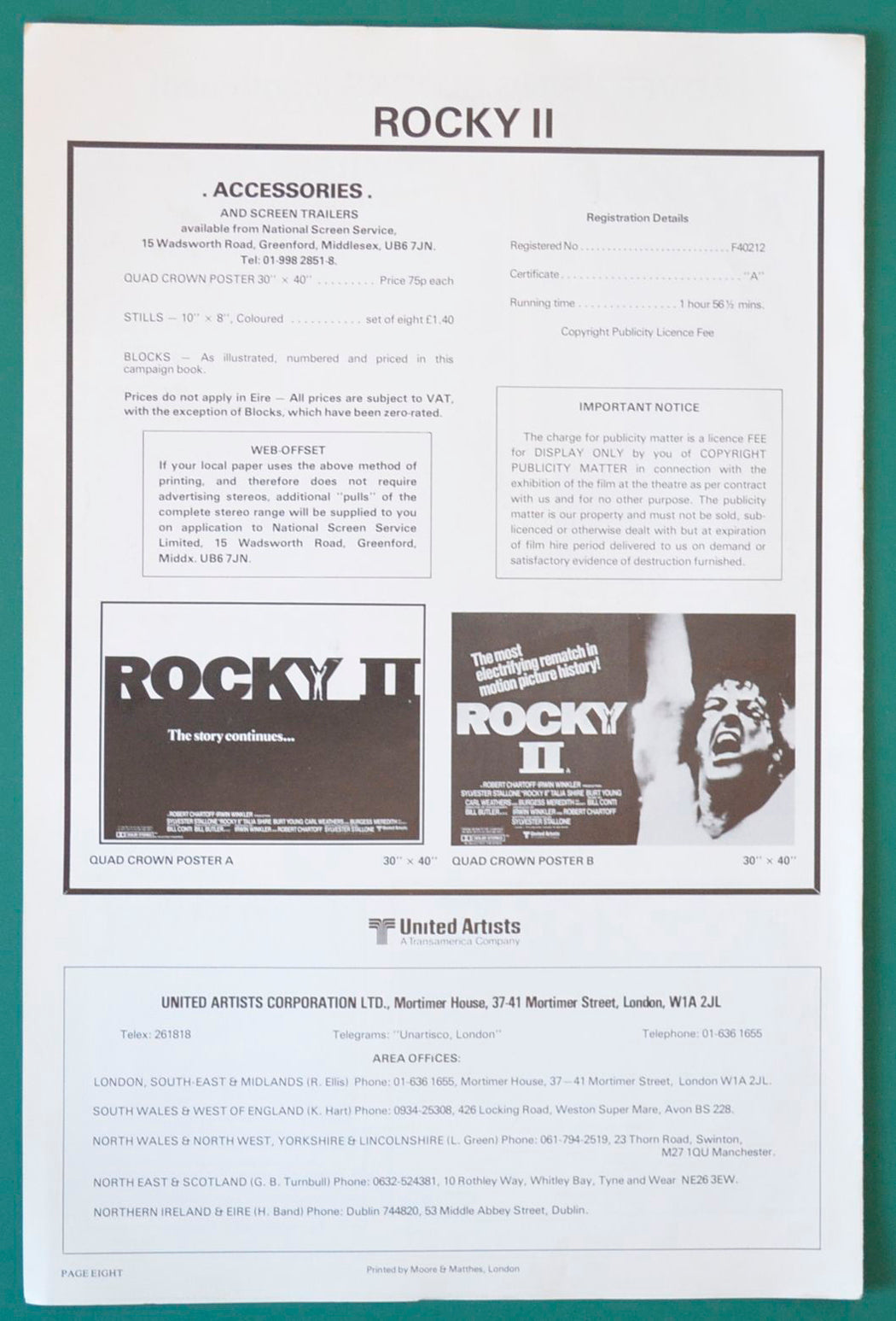 “Rocky II” Original 8 Page Cinema Exhibitors Campaign Press Book + Synopsis / Credits Leaflet