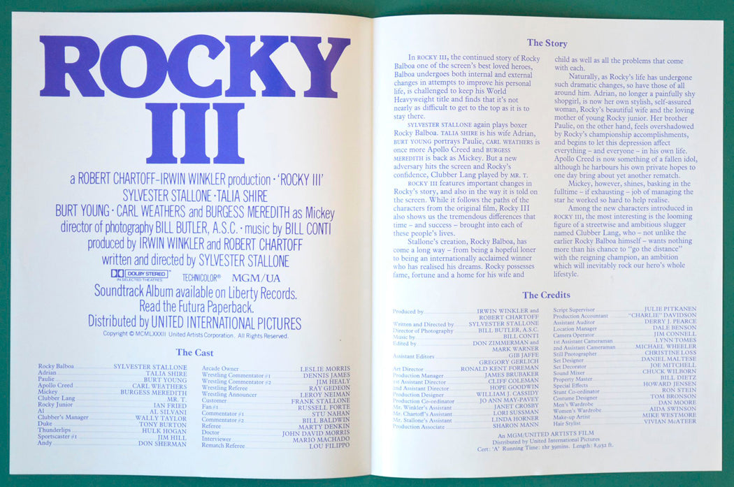 “Rocky III” Original 5 Page Cinema Exhibitors Campaign Press Book + Synopsis / Credits Leaflet