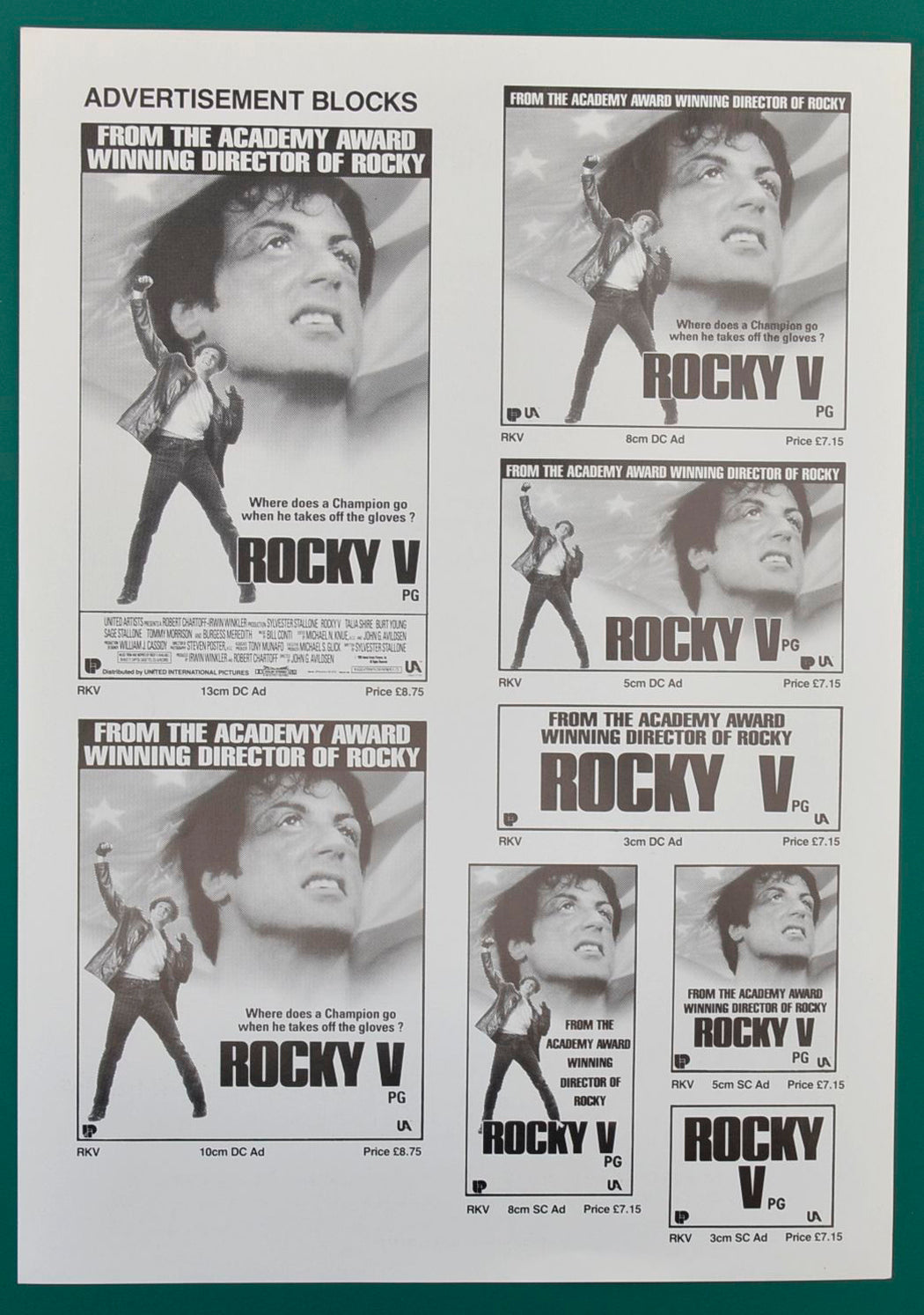 “Rocky V” Original Cinema Exhibitors Synopsis / Credits Booklet + 32 Page Production Information Document + Advertising Blocks Sheet