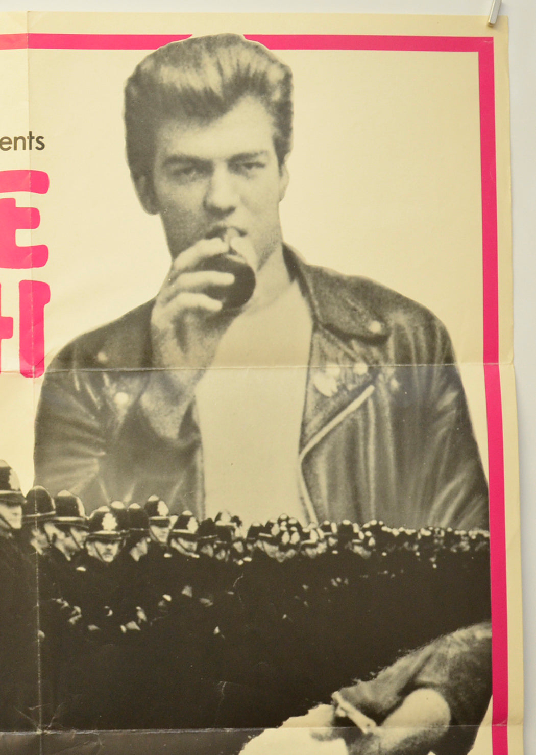 Poster has yellowed with age, the D and E in RUDE have been covered over with pink paint/felt pen?, Extremely tiny tear and a couple of tiny creases on the top edge, two tiny tears and mild creasing on the bottom edge, very mild creasing to the side edges, lightly creased corner tips, mild fold wear including a tiny wear hole at the bottom fold intersection plus stress marks on the fold lines (note there are three horizontal one vertical folds as issued), a few light surface creases within the black areas of the policemen, additional creasing around the bottom fold intersection, a little blu-tac grease/residue on the back of the corners and the back of the edges of every fold line (only noticeable on the front if the poster is held up to the light / backlit), title has been written on the back in black Biro (again only noticeable on front if backlit), otherwise good.