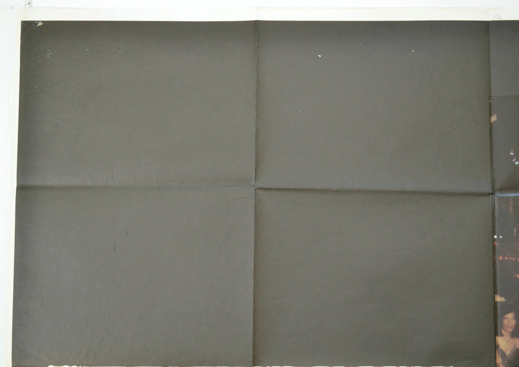 1 cm piece torn from the top right corner, extremely tiny tear and very mild creasing on the top edge, light creasing to the bottom right corner, extremely mild creasing on the right edge, approximately ten pinholes scattered around both top corner areas (mostly within the black background and some have torn a little), two pinholes in the black background at the top between the left and center vertical fold lines and a pinhole between the center and right vertical fold lines, four pinholes around both bottom corner areas, tiny Brown stain spot near the top right corner (within white border), extremely mild fold wear (note there are three horizontal fold lines), a number has been written on the back of the center of the top edge in black pen which has lightly bled through to the front within the white border area, a little writing on the back in Biro along with a small spot of tippex / whiteout and a tiny black ink spot (all only noticeable on the front if the poster is held up to the light / backlit), small patch of very tiny faint Brown liquid splashes on the back of the central area of the poster (not noticeable on front), Otherwise Very Good!