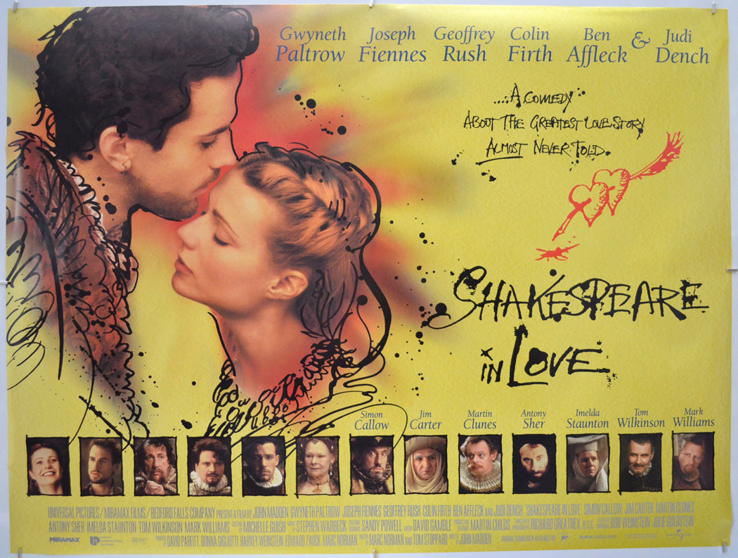 “Shakespeare In Love” (Original Yellow Version) Original Quad Poster - Film Poster - Movie Poster