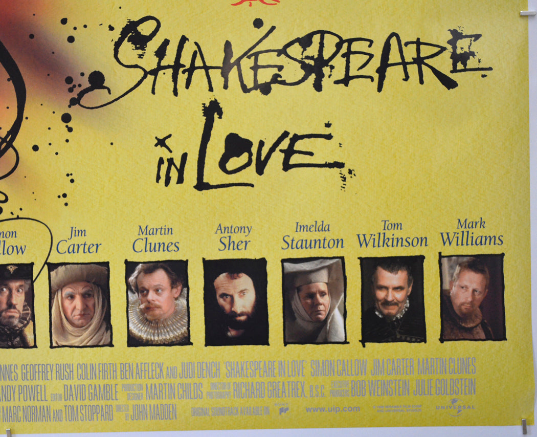 Gwyneth Paltrow, Joseph Fiennes, Geoffrey Rush, Colin Firth, Ben Affleck, Judi Dench, Simon Callow, Tom Wilkinson, Antony Sher, Martin Clunes, Imelda Staunton, Steve O'Donnell, Tim McMullen, Steven Beard, Patrick Barlow, Jim Carter, Nicholas Le Provost, Rupert Everett.