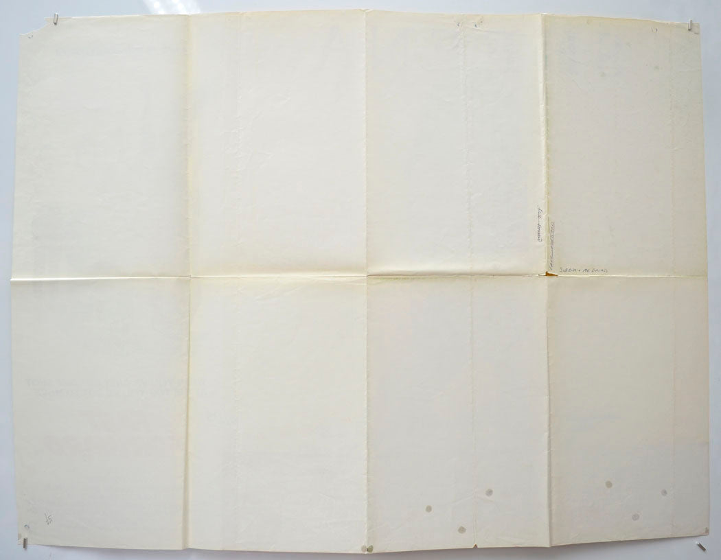 POOR! - 4 x 3 cm piece torn from the top right corner, two tiny tears and mild creasing/edge wear on the top edge, two tiny tears and mild creasing on the bottom edge, mild edge wear around the center of the left edge, blu-tac grease/residue near every corner and the center of the bottom edge along with a couple of additional spots along the top edge, five additional patches of blu-tac grease within the bottom credits block area, three additional vertical fold lines making a total of six, fold wear including heavy stress marks on the fold lines and a 4 cm tear across the fold intersection just left of Roberts (some paper loss here also), six pinholes along the top edge, four pinholes along the bottom edge, title has been written three times on the back in Biro (only noticeable on the front if the poster is held up to the light / backlit), otherwise okay.