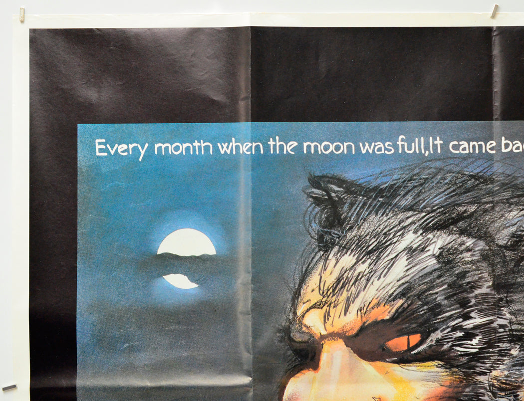 Extremely mild creasing on the top and bottom edges/borders, 1 cm diagonal crease across the top right corner, two tiny black print dots in the left white border (just above fingernail), light 2 cm diagonal crease in the black background below the werewolf thumb, very light 5 cm diagonal crease in the black background just right of the top center, light creasing around the fold intersections including a crease from the right intersection across to the werewolf ear, tiny dark grubby mark on the back of the right edge (below center and only noticeable on the front if the poster is held up to the light / backlit), Otherwise excellent! Probably never displayed.Double Sided :