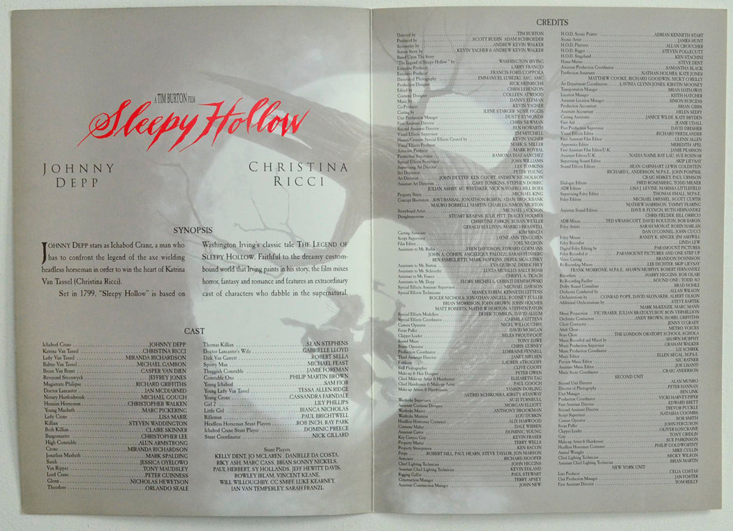 “Sleepy Hollow” Original Cinema Exhibitors Synopsis / Credits Booklet