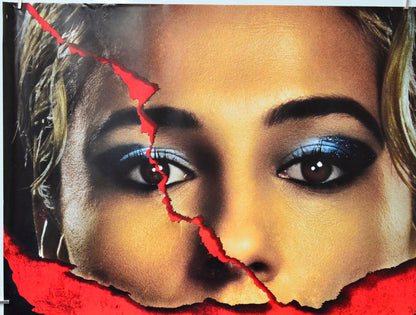 A little blu-tac grease/residue in the black background a few inches below the O in ONLY, 2 cm thick white surface crease and a couple of smaller creases in the black background to the right of the neck, two tiny white surface creases near the top left corner, very mild creasing on the top and right edges, tiny tear and mild creasing on the bottom edge including a 1 cm vertical white crease line, light creasing at the top of the left edge, a couple of tiny white surface creases near the right edge, small light indentation squiggle near the center of the right edge, otherwise good.Double Sided :