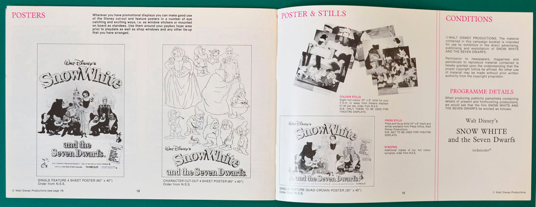 “Snow White And The Seven Dwarfs” Original 20 Page Cinema Exhibitors Campaign Press Book + Synopsis / Credits Sheet