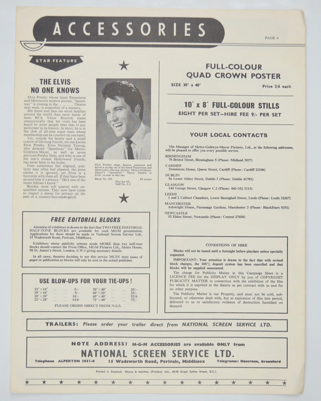 “Speedway” Original 4 Page Cinema Exhibitors Campaign Pressbook (UK)