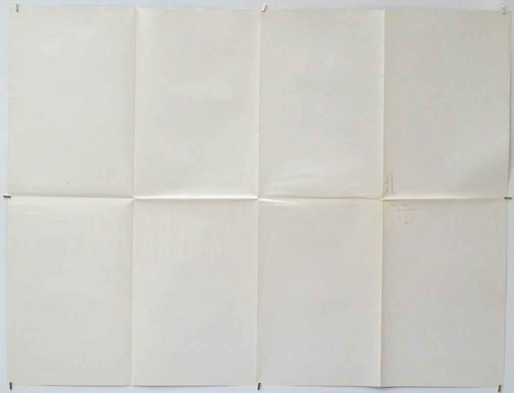 Extremely tiny tear at the center of the bottom edge, extremely mild creasing at the top of the left edge, 24 cm light diagonal crease either side of the center of the poster going down to the near the bottom of the center vertical fold line and two similar creases going up to near the top of the center vertical fold line (creating a light diamond shaped crease at the center of the poster), extremely mild creasing at the fold intersections, extremely faint 12 cm diagonal crease either side of both the top and bottom of the left and right vertical fold lines, the title has been written on the back in black Biro (only noticeable on the front if the poster is held up to the light / backlit), otherwise excellent!Double Sided :