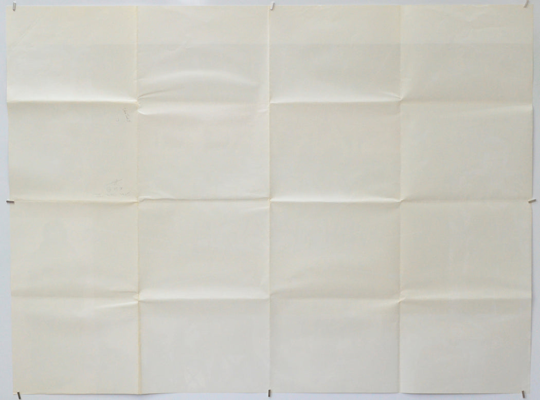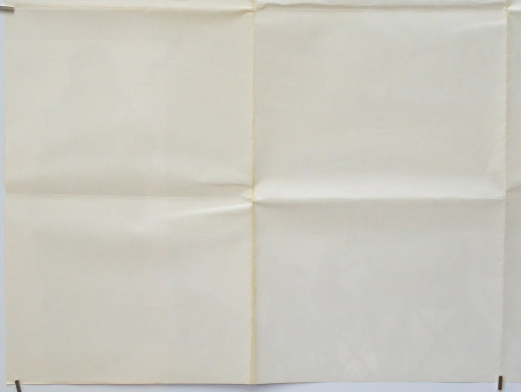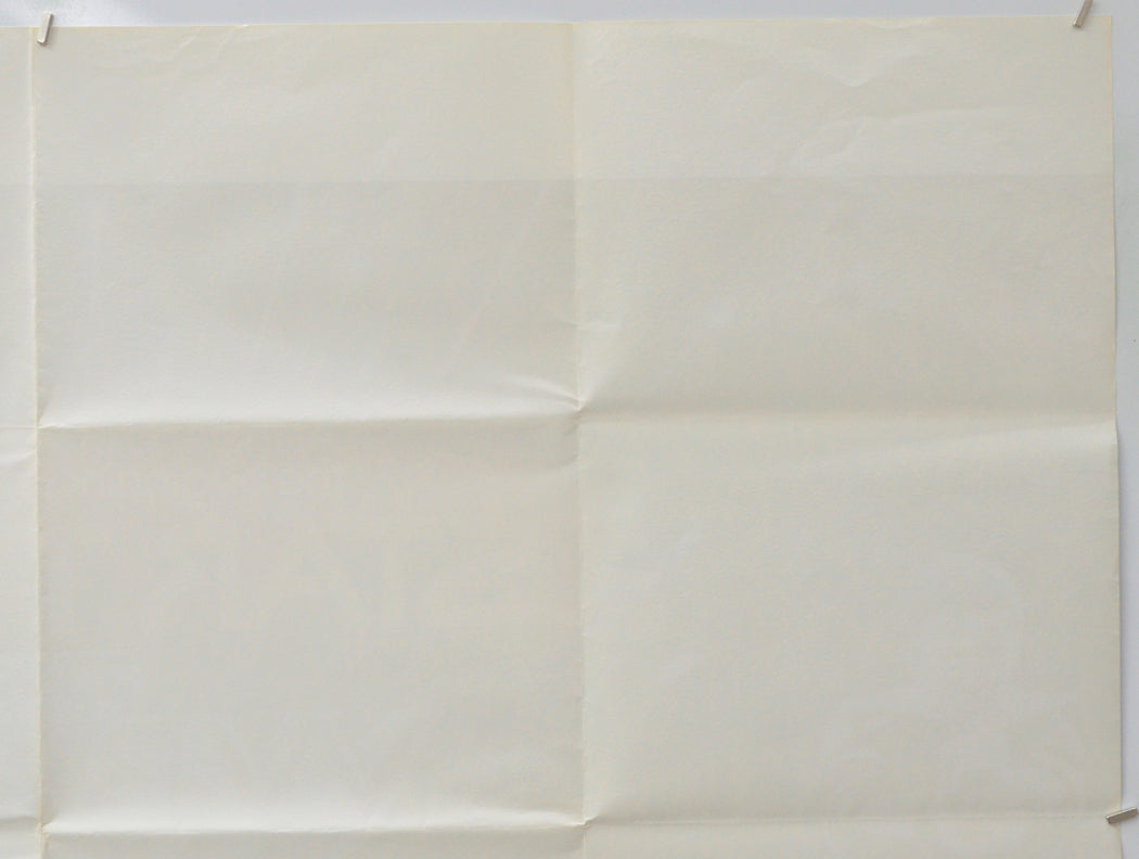 9 cm horizontal crease within the left of the top white border, 9 x 3 cm patch of surface creasing just left of the top center, 12 cm diagonal crease across the top right corner, Six very fine black print error lines within the top white border (above the picture boxes on the right… These have been on every copy of this poster that I have ever had so must have been a flaw on the print run), very slight Browning to the tip of the top of the left edge, light creasing around the fold intersections (note there are three horizontal and three vertical folds), the back of the right and center vertical fold lines have browned slightly (this is faintly visible on the front around the top center… more is noticeable if held to light/backlit), the title has been written on the back in black Biro (again only noticeable on the front if backlit), otherwise excellent! Probably never displayed.Double Sided :