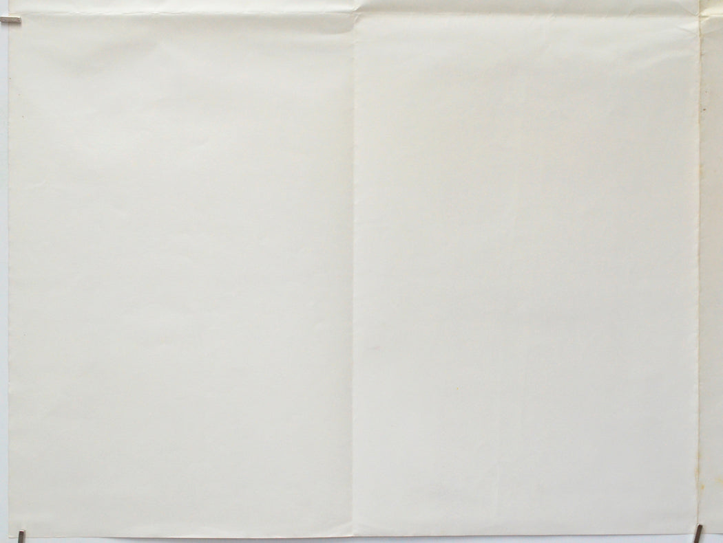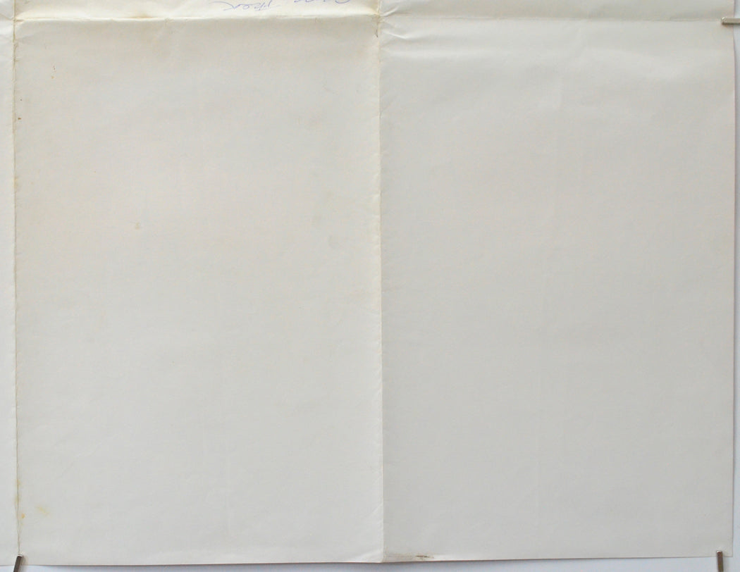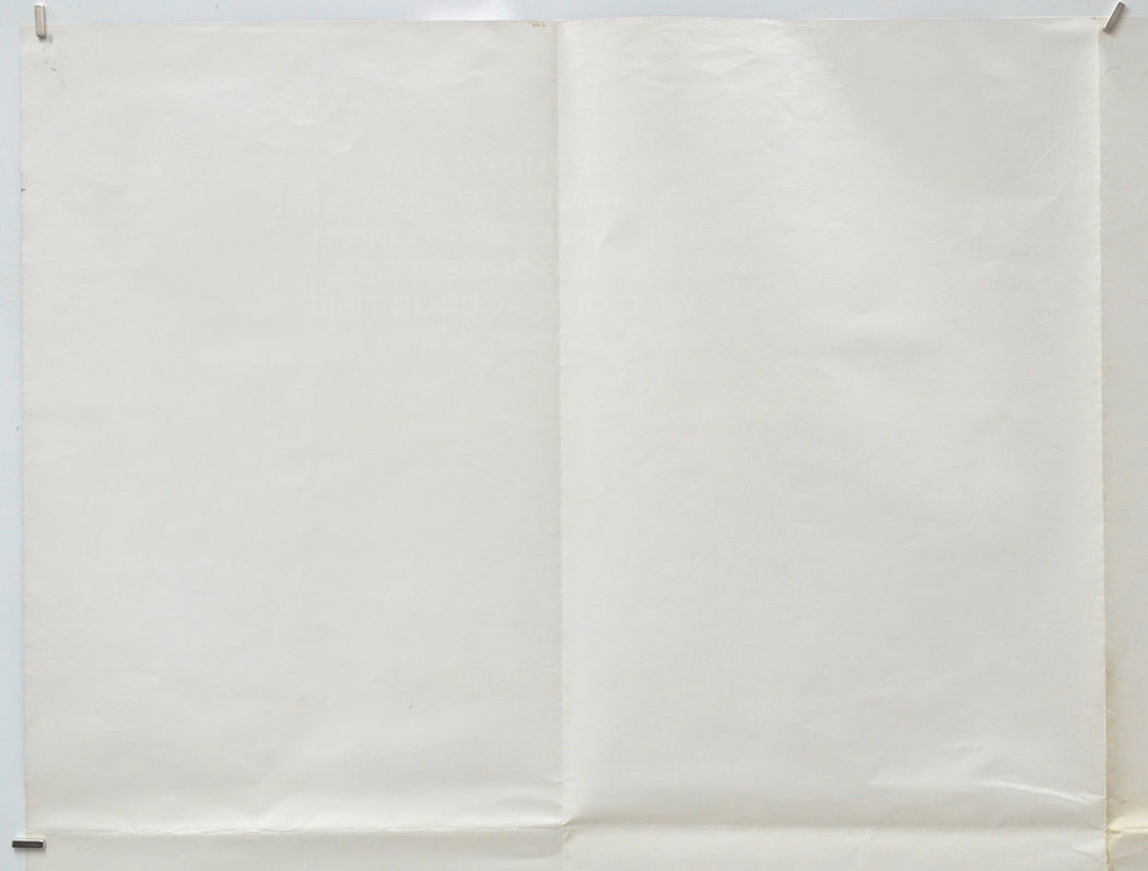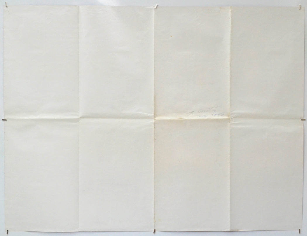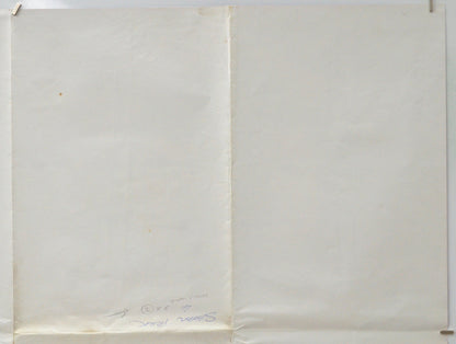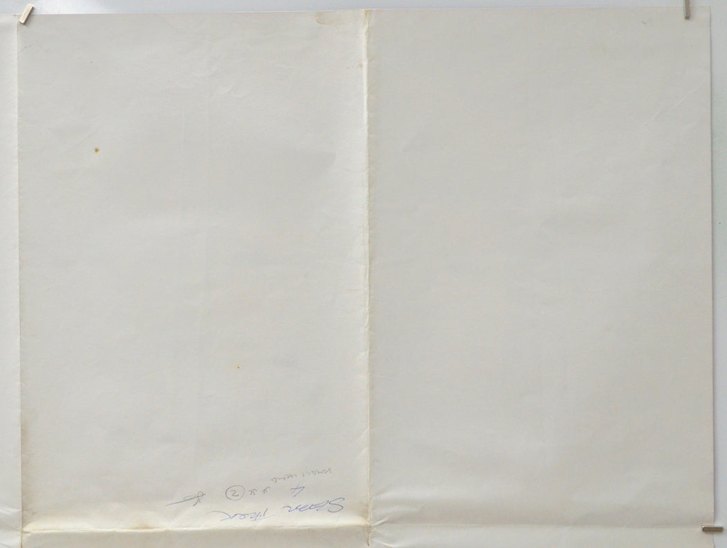 Four pairs of faint vertical creases spanning top to bottom (the first pair goes down through the left wing of the spaceship and the second pair through the right wing, the third pair of creases go down through the H in THE and the fourth through the AG in VOYAGE), 3 cm diagonal surface crease and a smaller crease near every corner and two similar creases either side of center of both the top and bottom edges (all these creases are inward of the edges), mild fold wear (creasing around the intersections and some additional creasing around the left vertical fold line), tiny Brown stain spot on the back of the poster (this is lightly visible on the front just right of McCoy’s forehead), slight Browning to the back of the center and left vertical fold lines and the back of the left of the center horizontal fold line plus the title has been written on the back in blue Biro (all only noticeable on the front if the poster is held up to the light / backlit), a little blu-tac grease on the back of a couple of the corners and a small finger smudge on the back of the top of the left vertical fold line (again only noticeable on the front if backlit), otherwise very good.Double Sided :