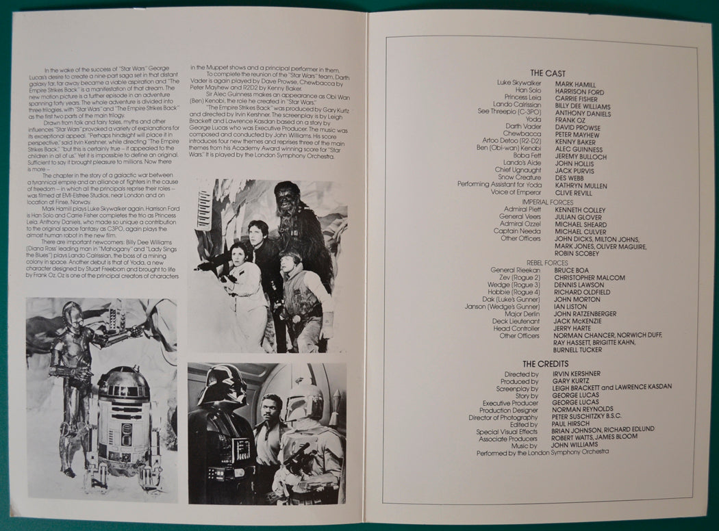 Mark Hamill, Harrison Ford, Carrie Fisher, Billy Dee Williams, Anthony Daniels, David Prowse, James Earl Jones (voice), Peter Mayhew, Kenny Baker, Frank Oz (puppeteer/voice), Alec Guinness, Jeremy Bulloch, Kenneth Colley, Julian Glover, Michael Sheard
