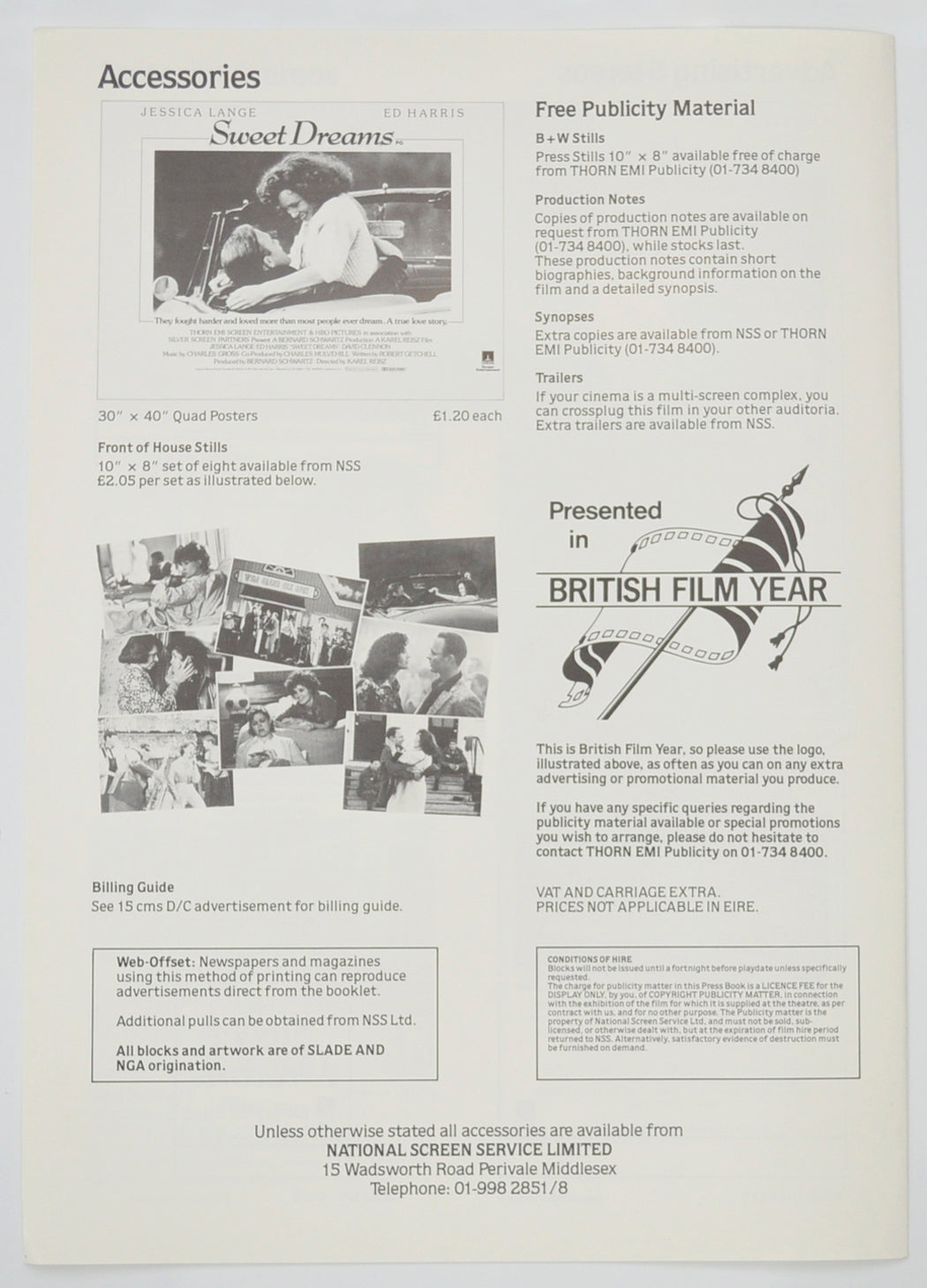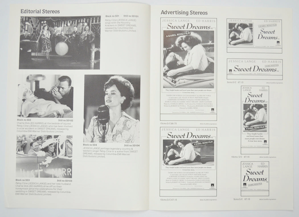 “Sweet Dreams” Original 4 Page Cinema Exhibitors Campaign Pressbook (UK) + Synopsis Sheet