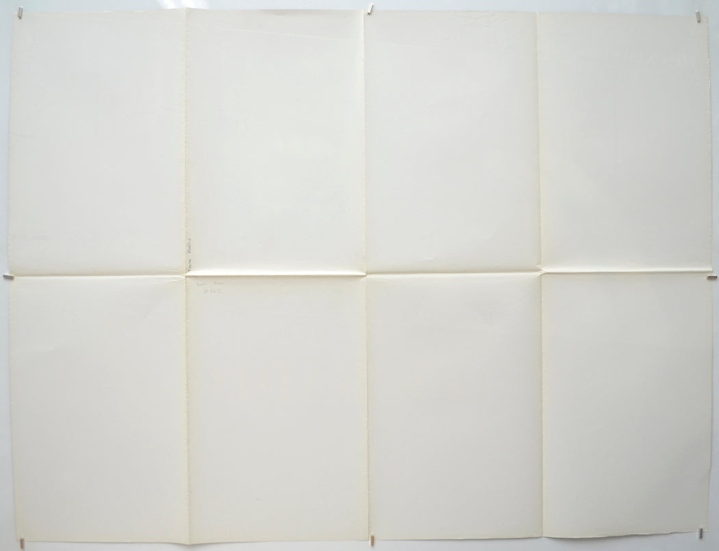 Very mild creasing/edge wear on the right edge including a tiny spot of print loss at the center of the edge, extremely mild creasing on the bottom edge, extremely mild creasing/edge wear on the top half of the left edge, some light surface creasing just below the top edge, mild fold wear (stress marks on the fold lines and some additional creasing around the intersections), the title has been written on the back in black pen and the back of the fold lines have yellowed slightly (only noticeable on the front if the poster is held up to the light / backlit), otherwise very good.