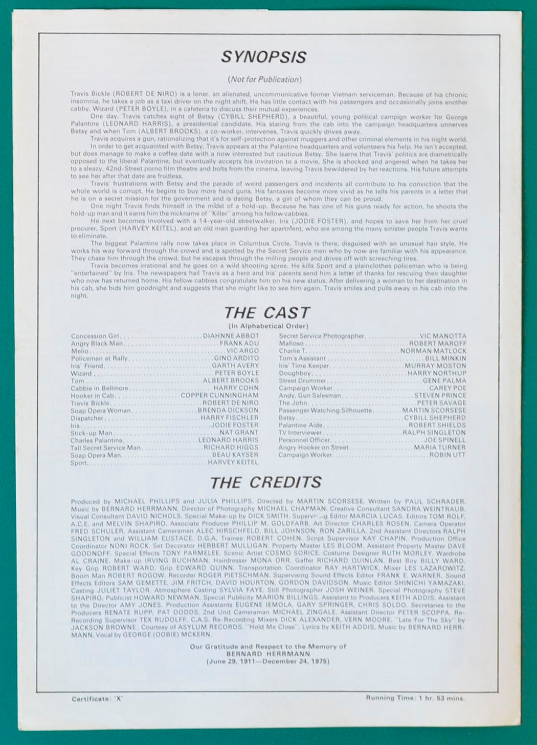 “Taxi Driver” Original 4 Page Cinema Exhibitor's Campaign Press Book