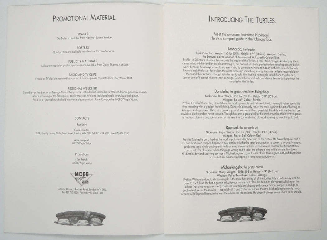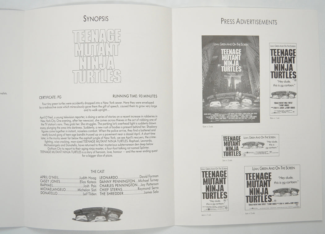 “Teenage Mutant Ninja Turtles” Original 6 Page Cinema Exhibitors Campaign Pressbook (UK)