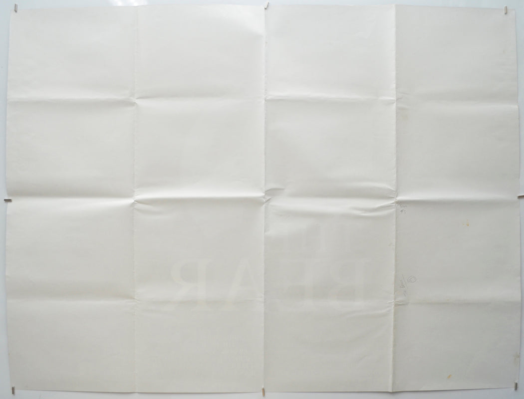 Tiny crease across the tip of the top right corner, tiny pinhole and some slight discolouration near the bottom of the left edge, very mild fold wear (stress marks on the fold lines and creasing around the intersections), the left edge may have become very slightly damp at some point as the surface is a little wavy (no apparent staining though), three tiny yellowish stain spots on the back of the bottom left corner area (only noticeable on the front if the poster is held up to the light / backlit), otherwise very good!
