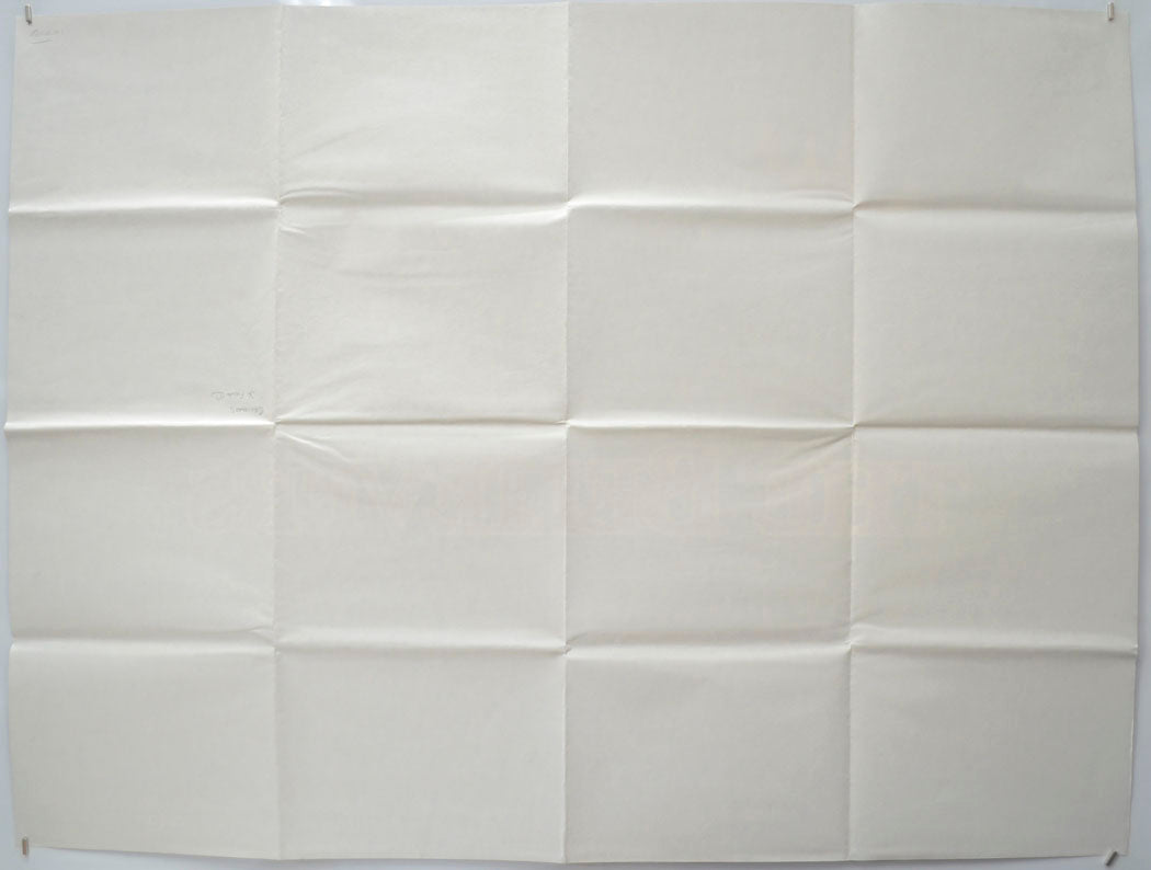 A couple of tiny creases on the left edge, band of light surface wrinkles from the left edge across to the shadowy face, light creasing around some the fold intersections (note there are three horizontal and three vertical folds as issued), otherwise excellent!