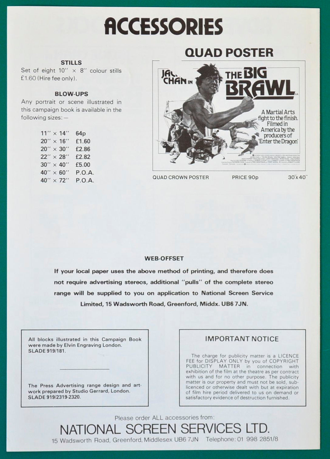 “The Big Brawl” Original 4 Page Cinema Exhibitor's Campaign Press Book + Synopsis / Credits Sheet