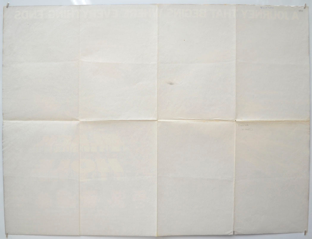 Approximately 3 tiny tears and very mild edge wear on the top edge (left), tiny tear and extremely mild edge wear on the right edge, 3 cm tear and mild creasing at the bottom of the left vertical fold line, two tiny tears on the left edge, pinhole near both top corners (both are a couple of inches inward of the edges), extremely mild fold wear including a small wear hole at the center fold intersection on the left vertical fold and a couple of tiny separations at the bottom of the left vertical fold (note there are three horizontal and three vertical folds), the title has been on the back of the top edge in Biro and a number has been black ink stamped on the back of the top left corner plus there is very slight Browning to the back of the left half of the center horizontal fold line (all only noticeable on front if the poster is held to light/backlit), otherwise very good!