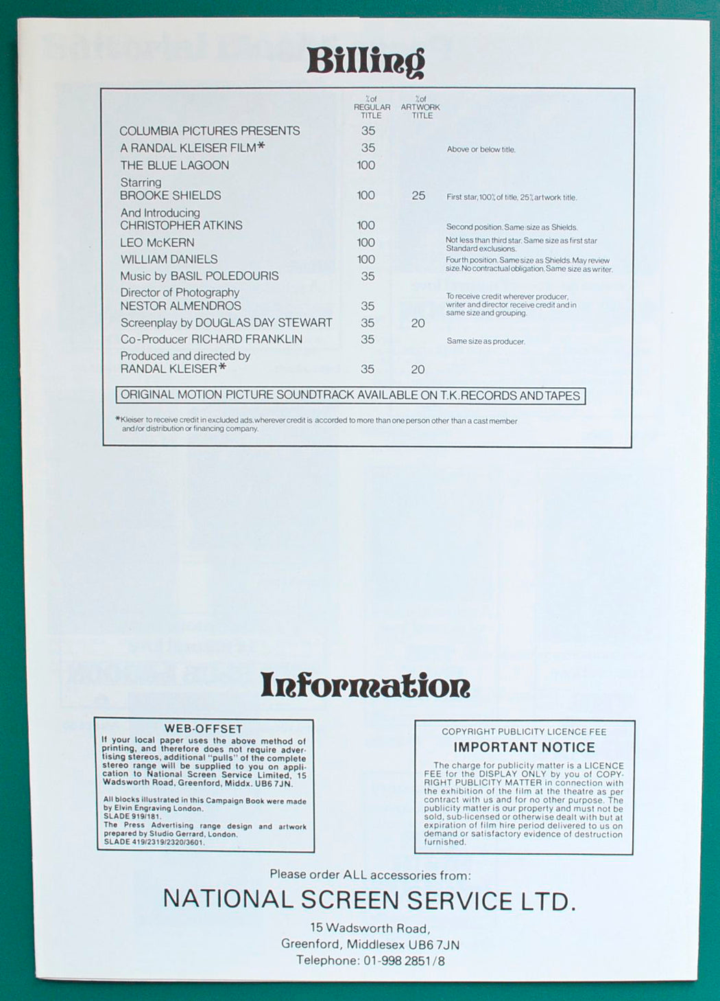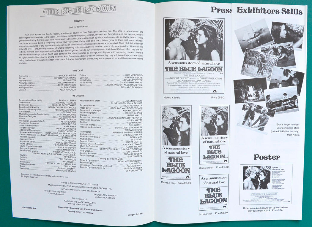 “The Blue Lagoon” Original 4 Page Cinema Exhibitor's Campaign Press Book