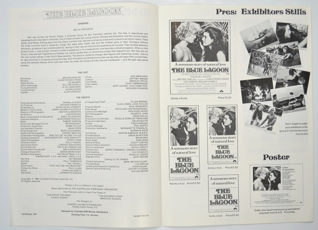 “The Blue Lagoon” Original 4 Page Cinema Exhibitors Campaign Pressbook (UK)