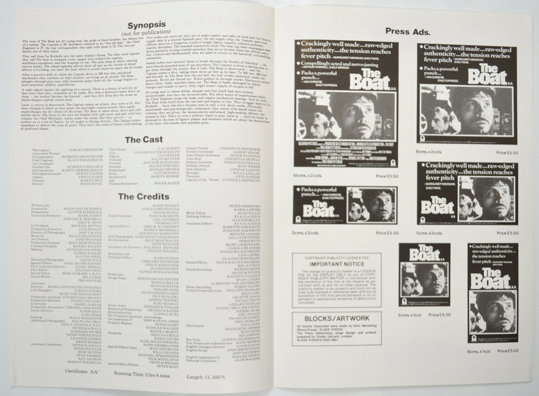 “The Boat” (a.k.a. Das Boot) Original 4 Page Cinema Exhibitors Campaign Pressbook (UK)