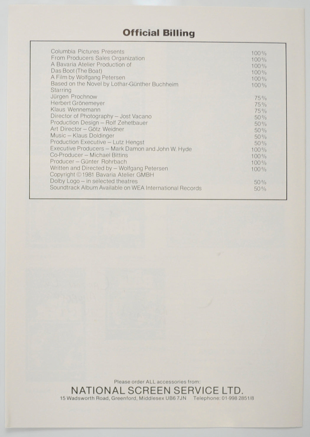 (a.k.a. Das Boot)Original 4 Page Cinema Exhibitors Campaign Pressbook (UK)