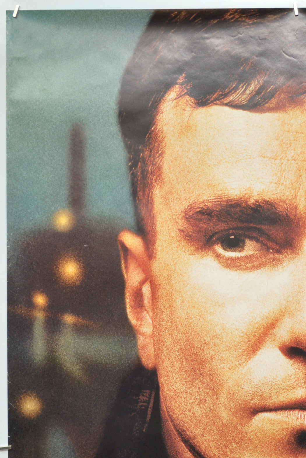Mild creasing/edge wear on the right edge, 1 cm diagonal crease across the bottom right corner, approximately seven tiny tears and moderate creasing on the left edge, tiny white surface crease below Day-Lewis right eye, otherwise good.